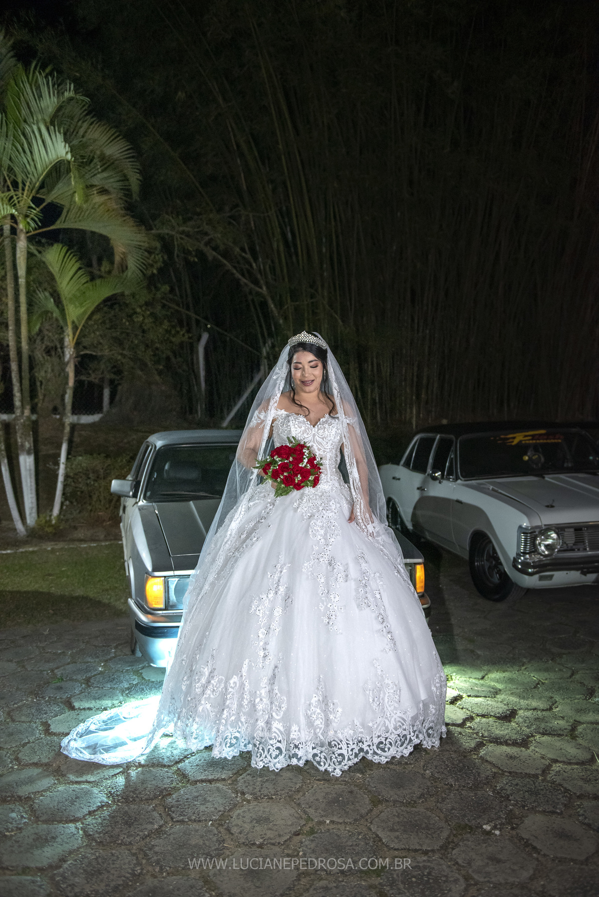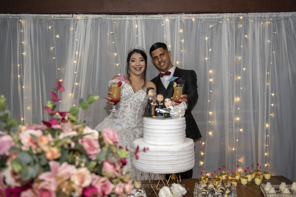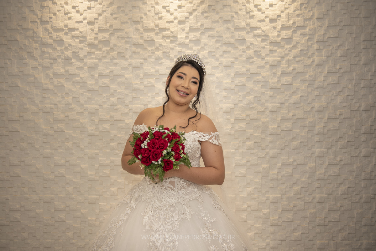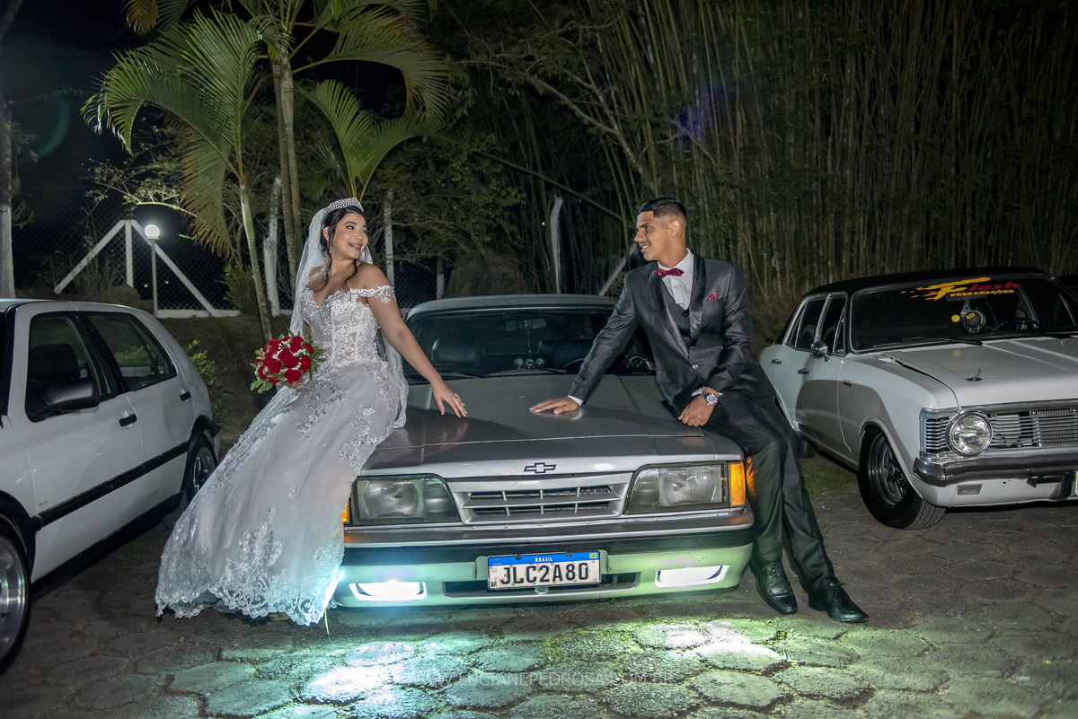 Jovem casal, ela venezuelana, há 5 anos no Brasil, um sotaque lindo, tímida e sorridente, ele fã de carro antigo, no caminho para a cerimônia a carreata dos opalas se encontrou com o carro da noiva, foi um surpresa, a noiva com certeza adorou!