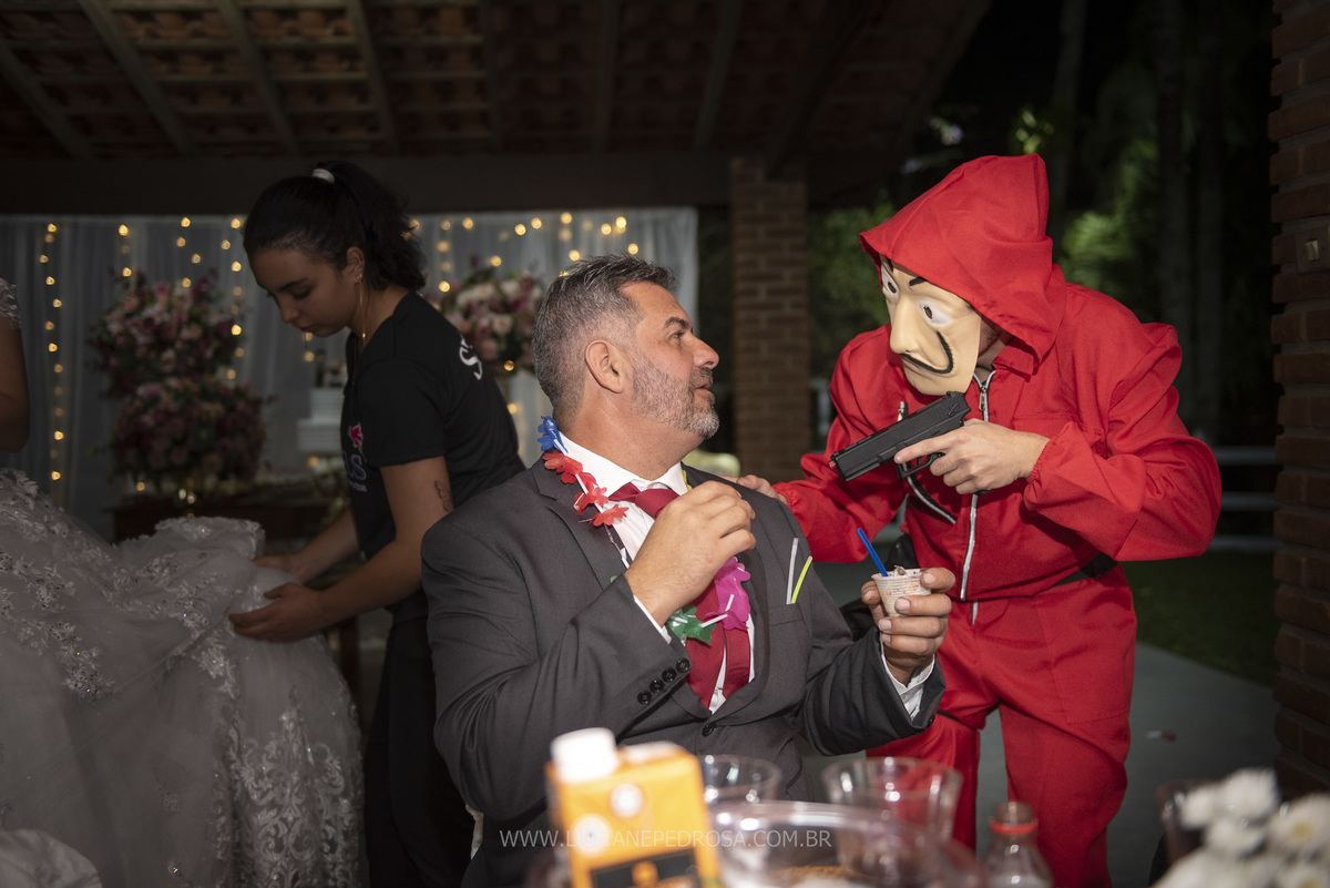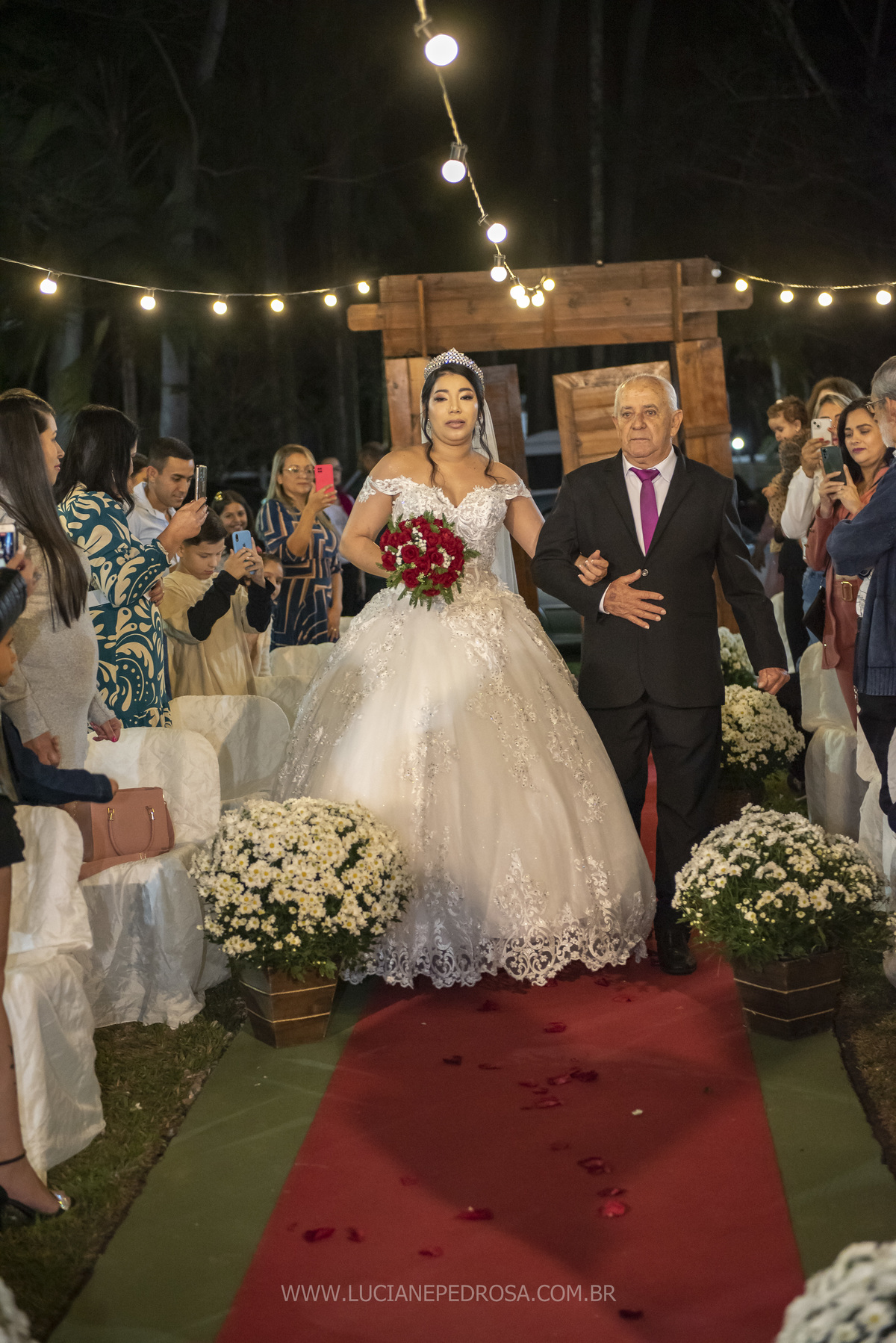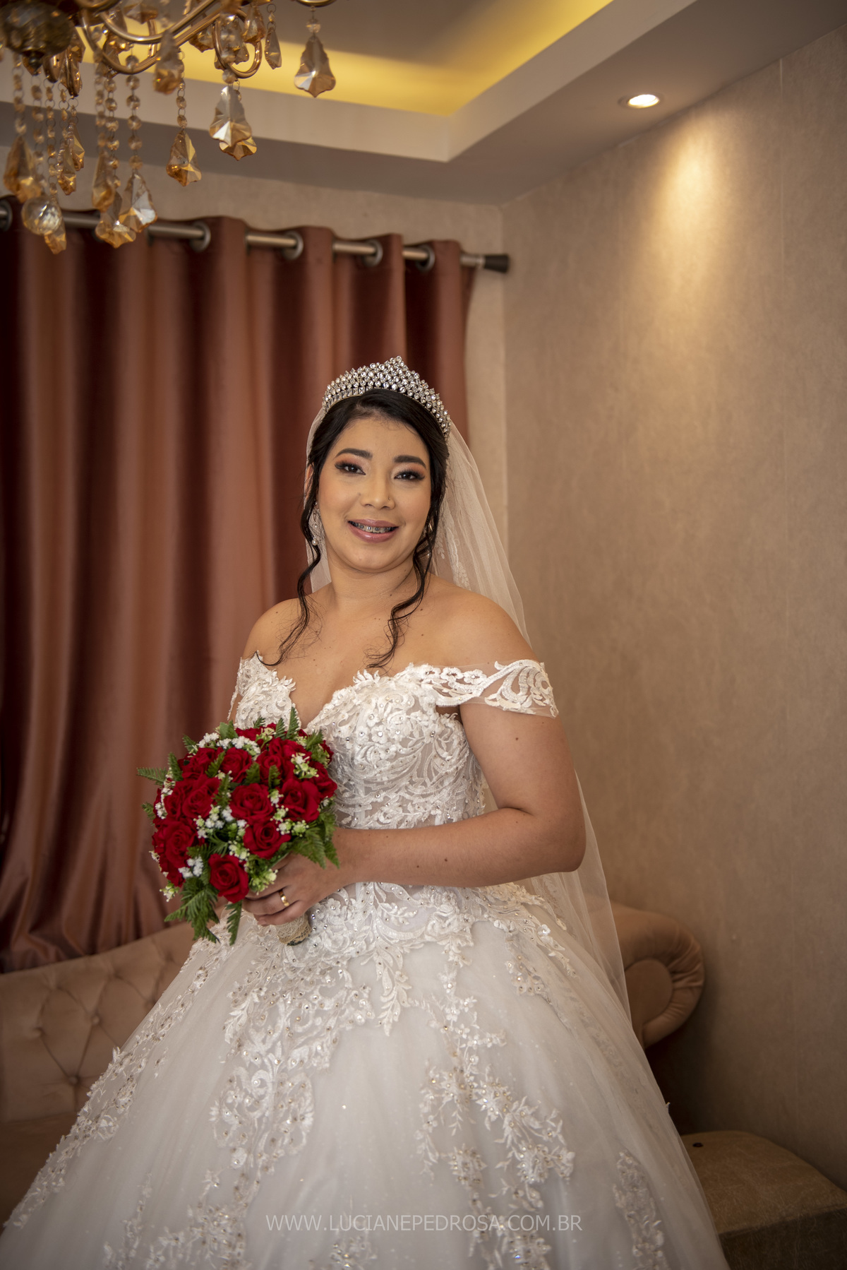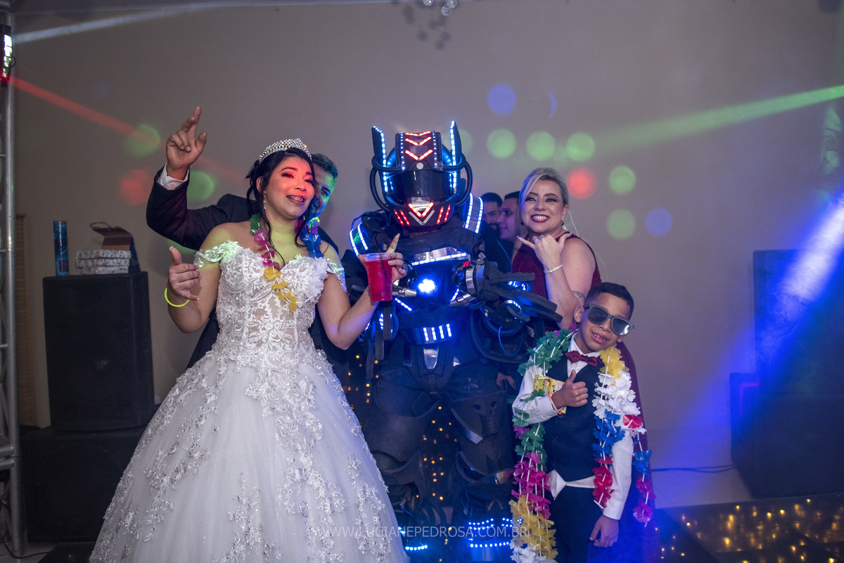 Jovem casal, ela venezuelana, há 5 anos no Brasil, um sotaque lindo, tímida e sorridente, ele fã de carro antigo, no caminho para a cerimônia a carreata dos opalas se encontrou com o carro da noiva, foi um surpresa, a noiva com certeza adorou!
